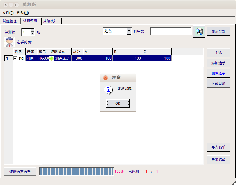 适用于情况A,需手动设置选手名称对应代号(也可直接以选手代号评测)。